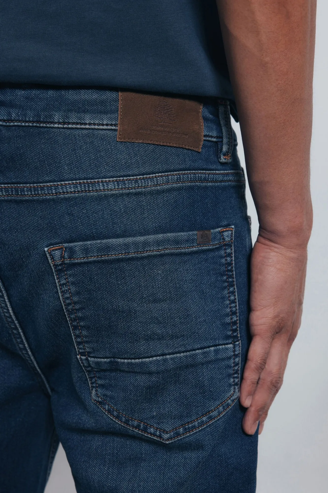 84% algodão, 15% poliéster, 1% elastano