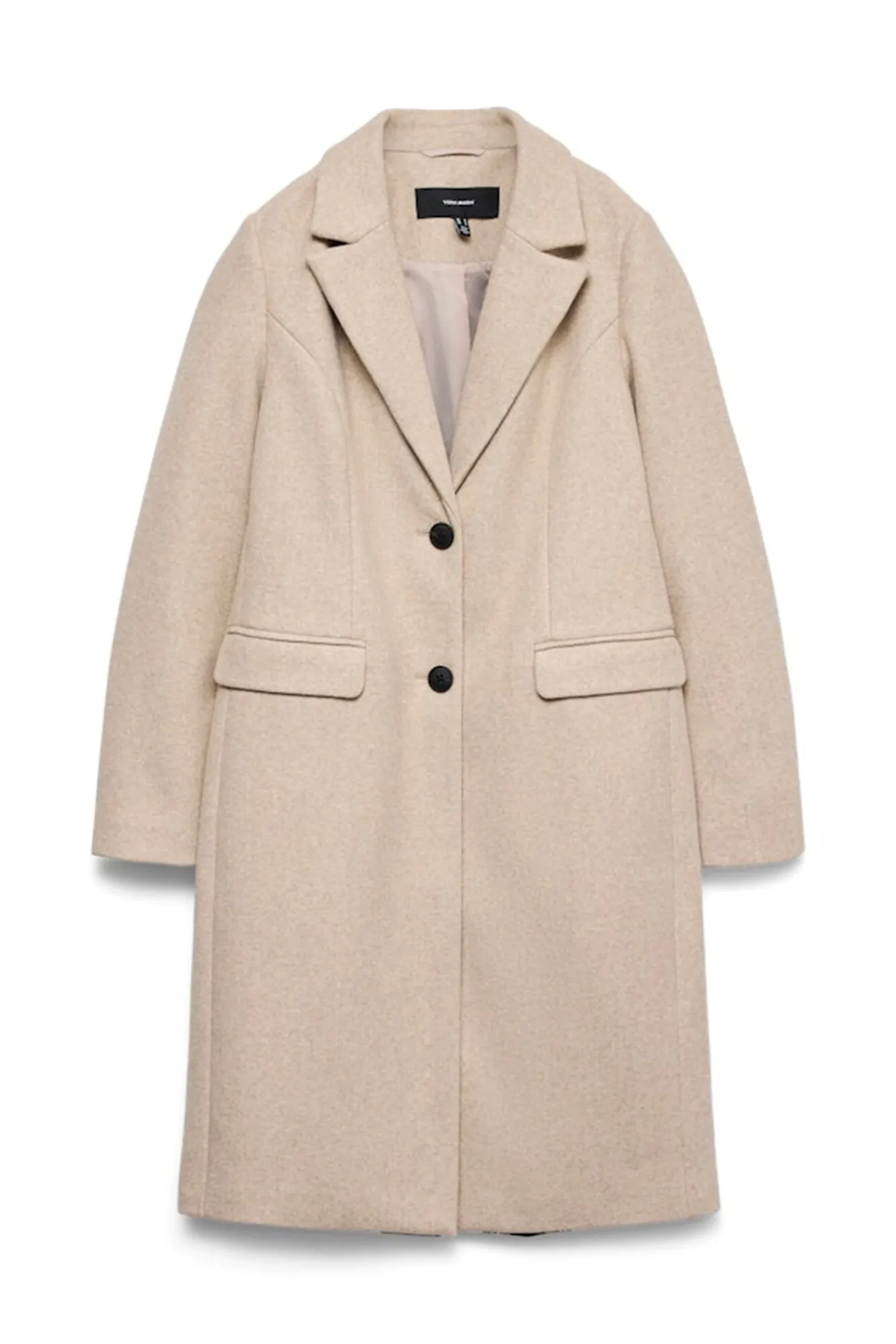 – Detalhe dos bolsos frontais com lapela.
