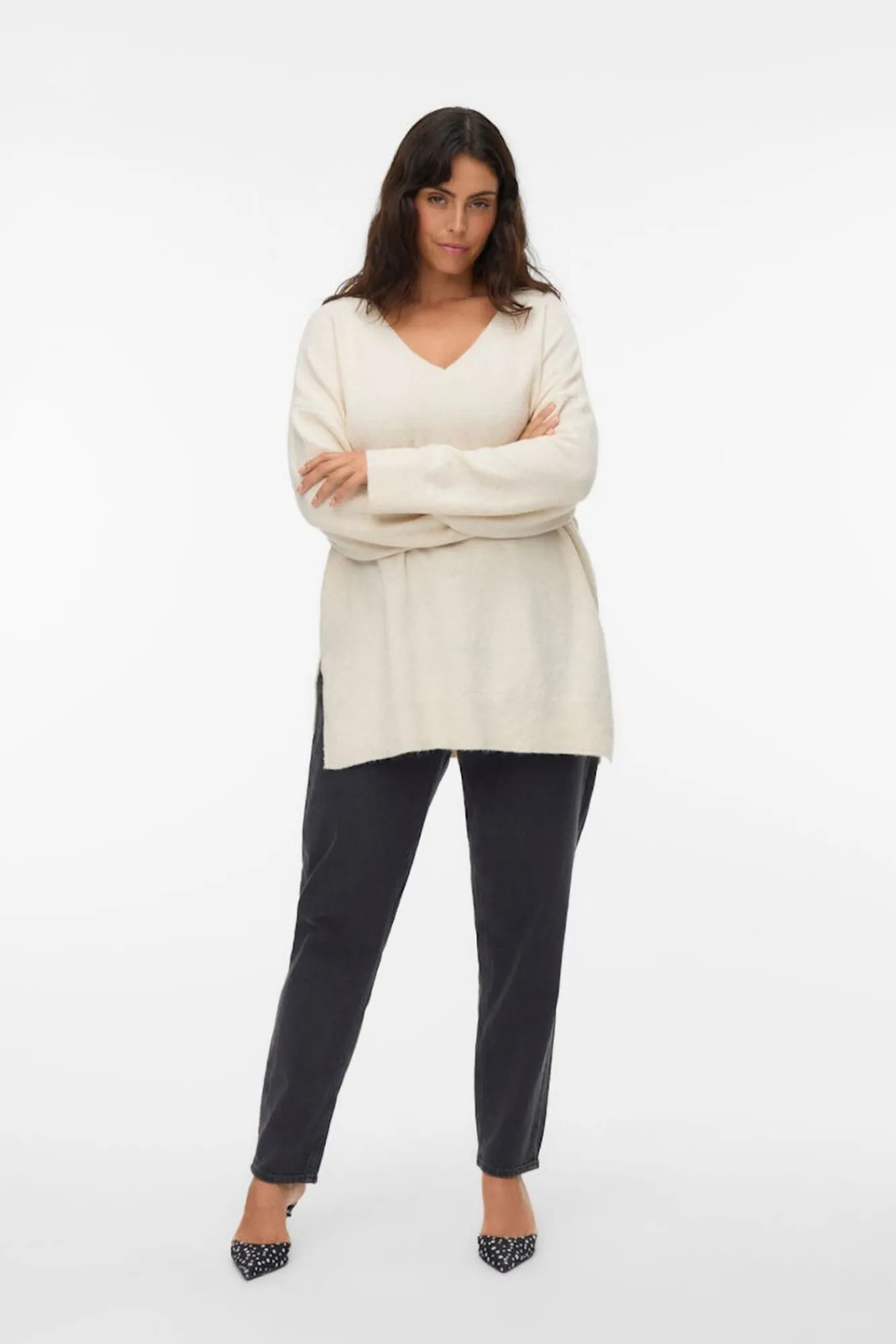– Canelado no decote, punhos e baixo.