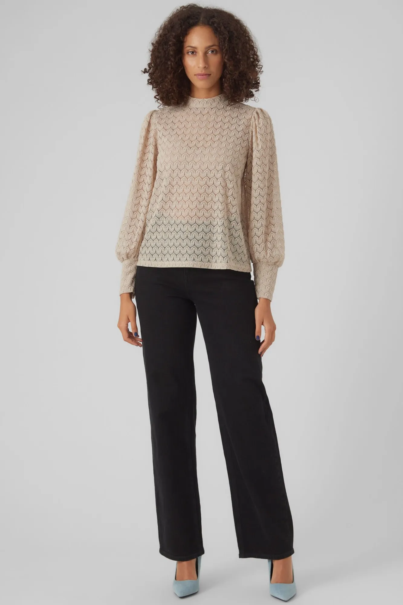 Vero Moda T-Shirts-Top de renda com gola fechada Cinzento