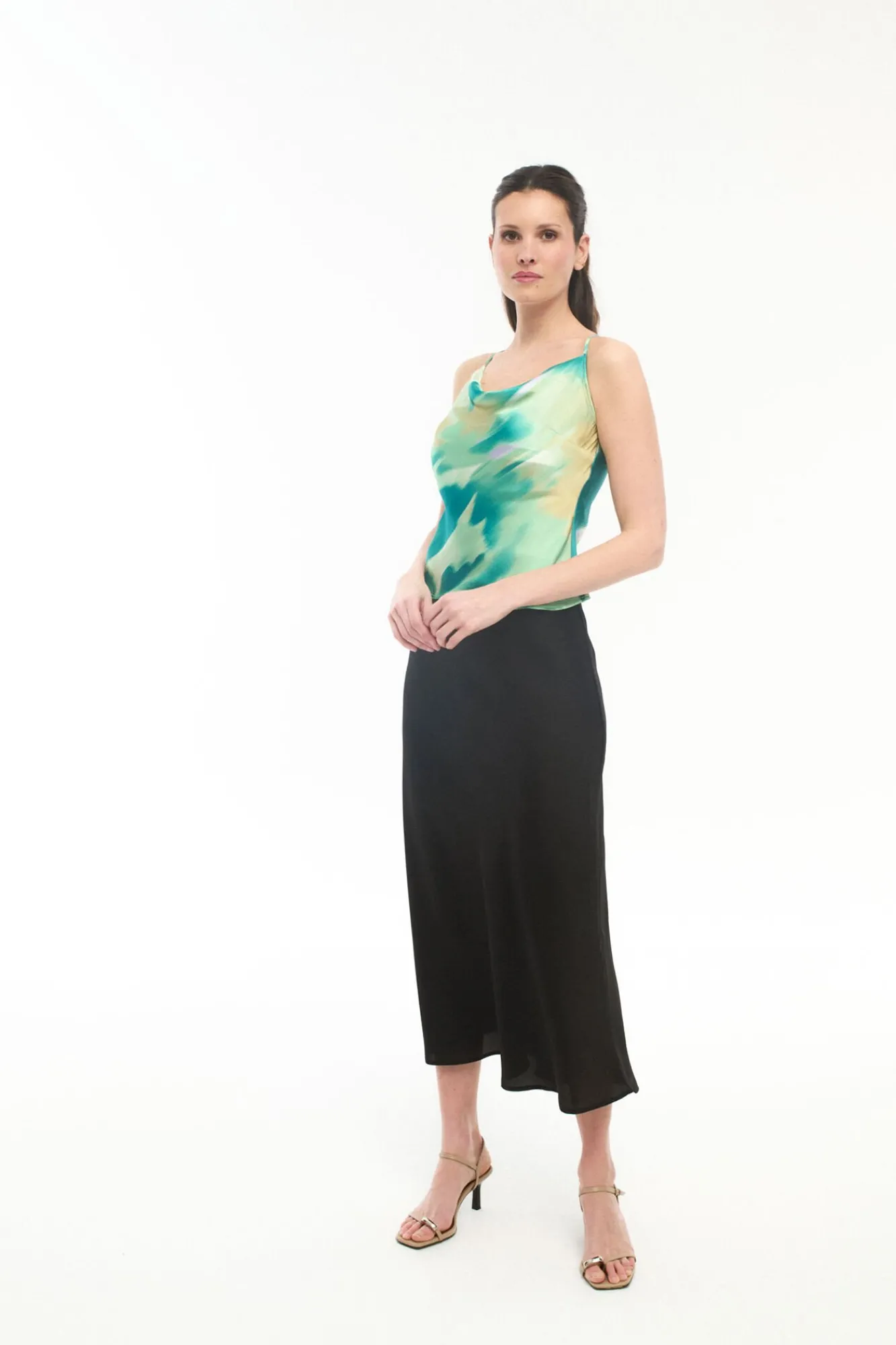 – Cintura alta elástica.Chame a atenção com esta linda saia longa de cetim! É uma das nossas peças favoritas graças ao cós alto e elástico, que lhe confere muito estilo e conforto.Comprimento: 90 cm no tamanho M