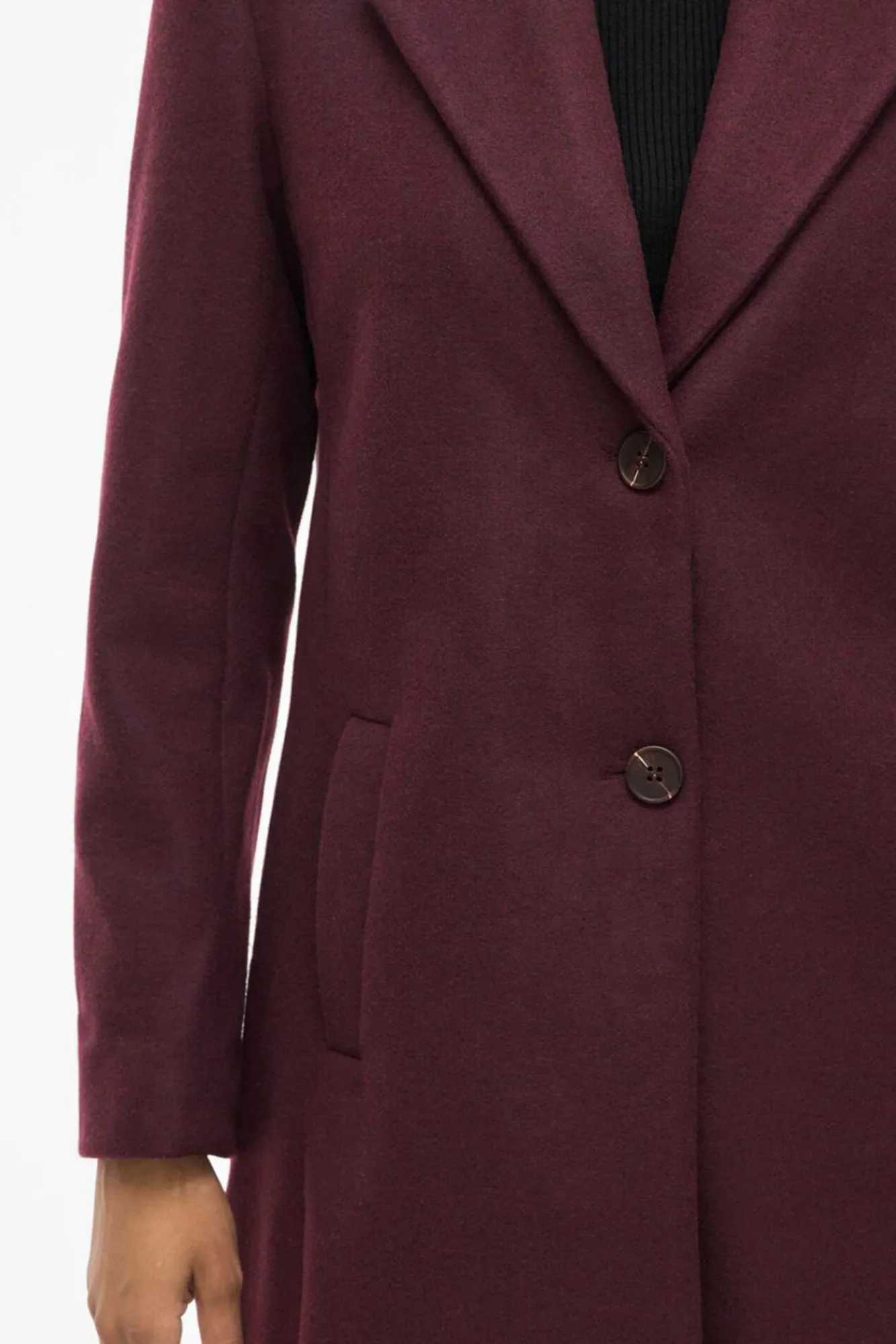 – Decote em V com abotoamento frontal