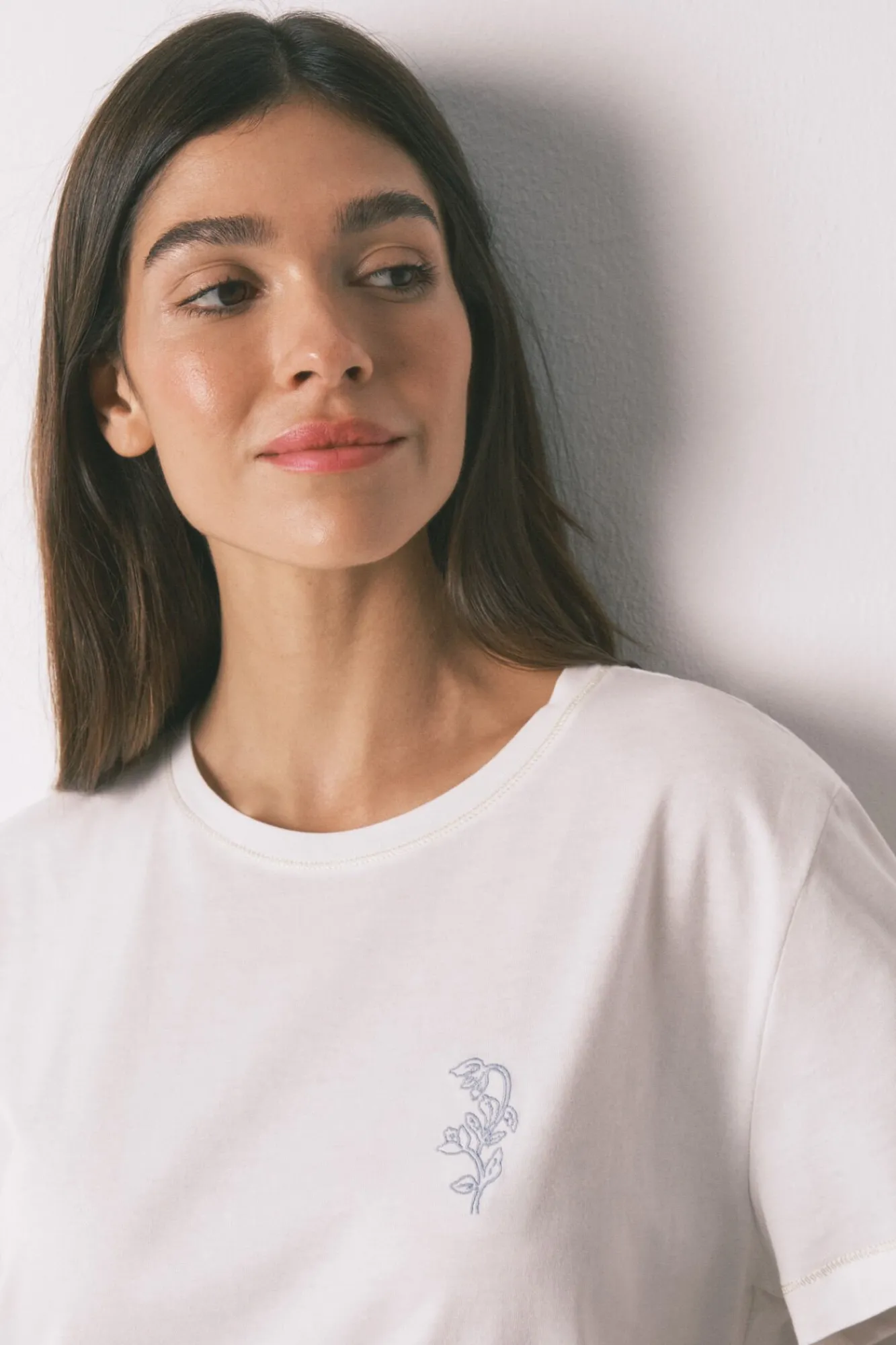 – Blusa de decote redondo com detalhe gráfico no peito.