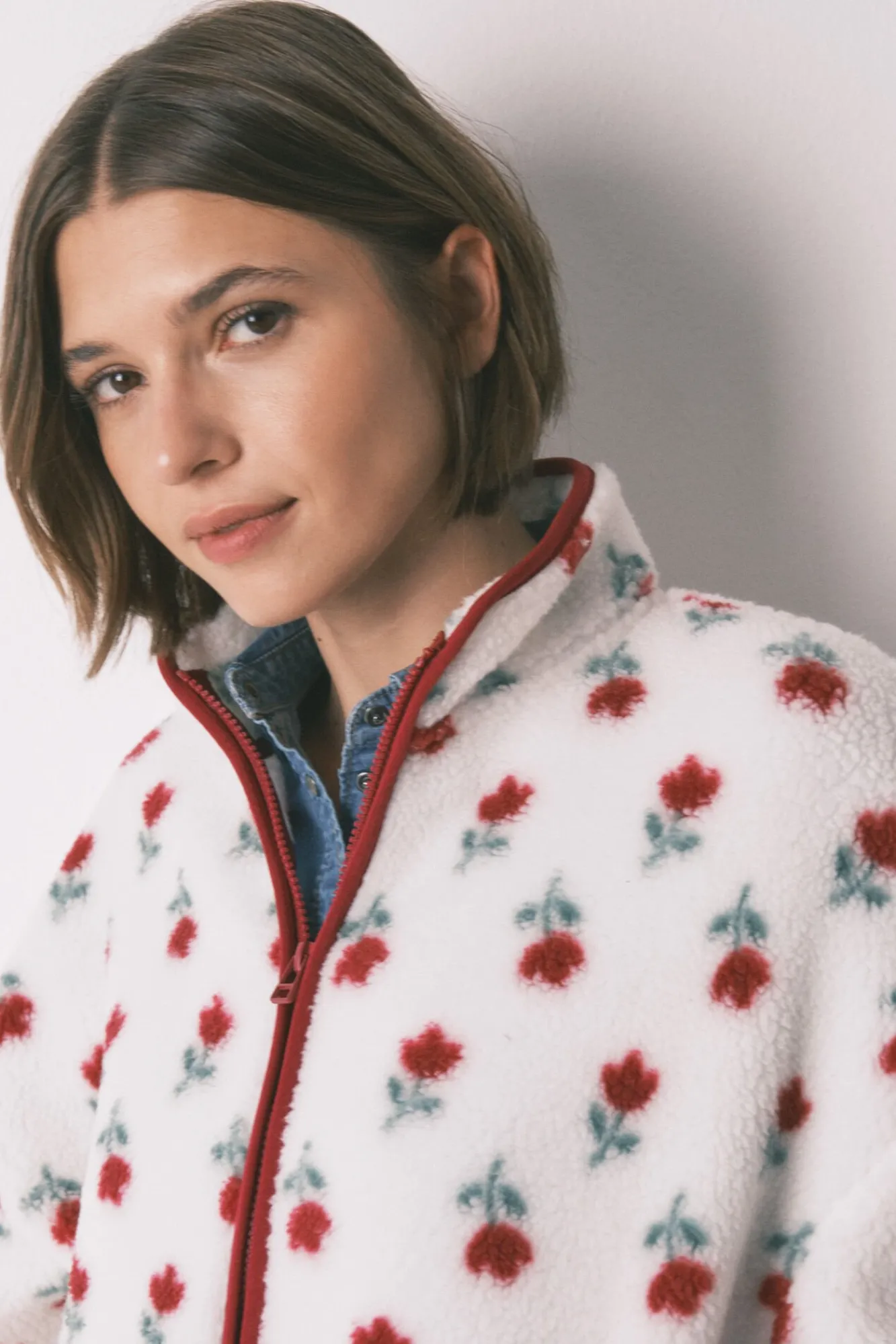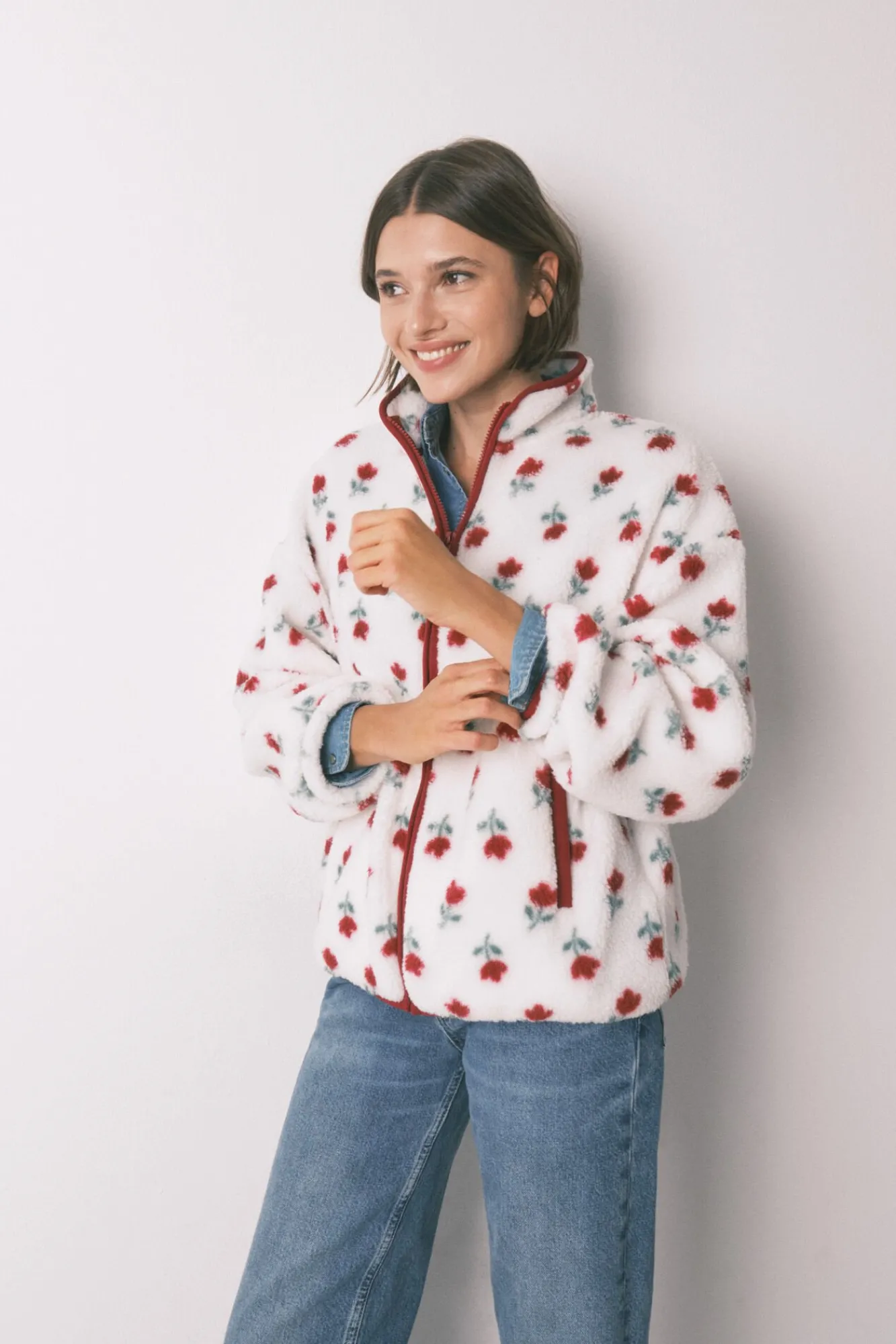 – Fecho-Éclair central e bolsos laterais com detalhe de debrum contrastante.